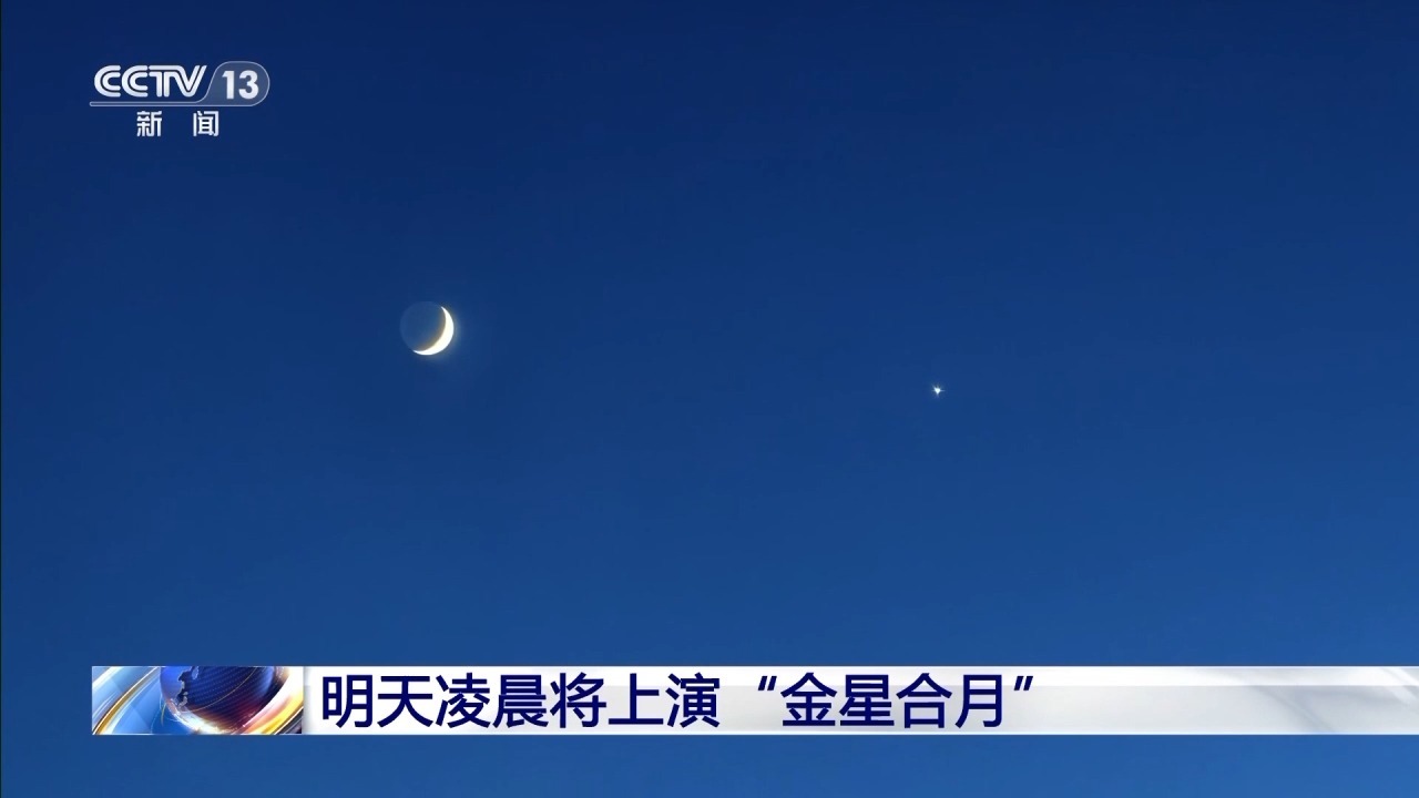 北京天文馆高级工程师 寇文:看点一个是金星的亮度,非常非常亮;第二是那时候算是早晨,月亮已经变成一个残月,一个非常细的、弯弯的月牙。明亮的金星和弯弯的月牙靠在一起,用照相机或者用手机,给他们拍一个合影,还是挺有意境的。