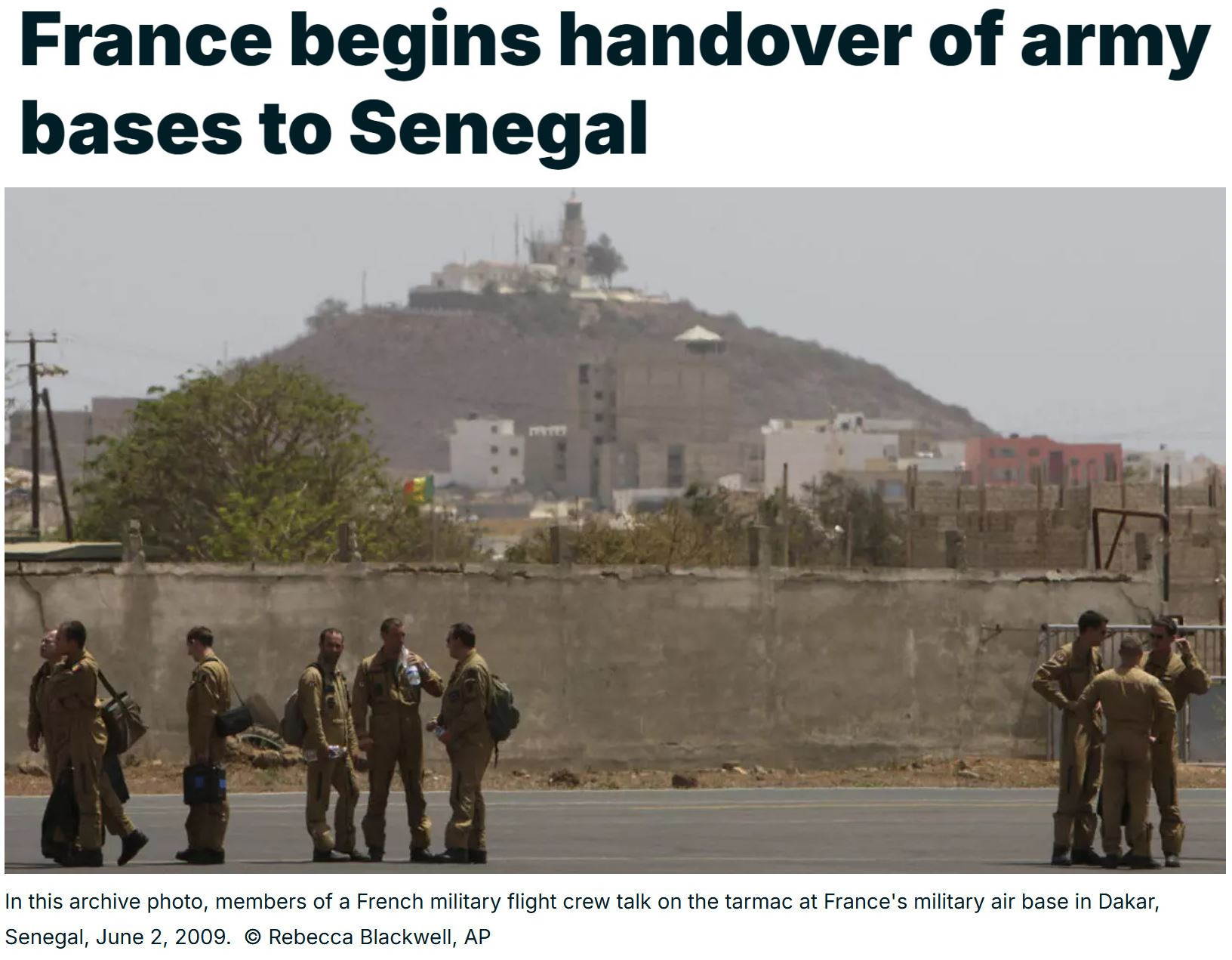 △法国24小时电视台2025年3月7日报道,法国开始向塞内加尔移交军事基地。