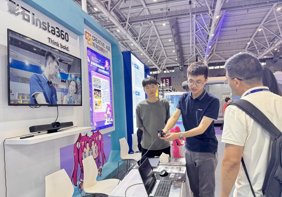 除了文化“软实力”,还有科技“硬实力”。一个月前,一则“美国纽约市民凌晨3点起来排队抢购的中国产‘黑科技’全景相机”的新闻火爆全网,而这款能拍摄360度影像和自动隐藏自拍杆的新品运动相机——Insta360 X5,正是已多次参展的前海企业影石创新科技出品。这款产品吸引不少摄影发烧友专程前来了解,自媒体创造者小柯就是其中一员,他表示,这是今年文博会上他最感兴趣的产品,其强大的功能和酷炫的外观是摄影者的心头爱。