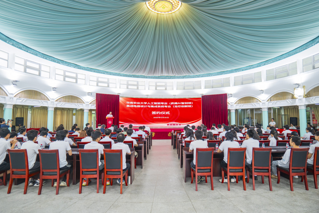 华为、中软国际、龙芯中科、广州腾科企业代表,华农本科生院(招生办公室)、电子工程学院(人工智能学院)负责人及师生代表共百余人参加仪式。