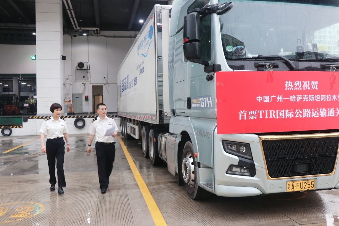 5月22日下午,经广州海关所属广州白云机场海关监管放行,一辆载有6.7吨虎皮兰、榕树等货物的国际公路运输(TIR)车辆从广州白云机场综合保税区(南区)驶出,通过霍尔果斯口岸出口至哈萨克斯坦阿拉木图。这标志着广州市首条TIR国际公路货物运输通道的开通,作为继航空、铁路、海运之后的第四类国际物流通道,该线路将有力促进“广货广出”,推动广东高质量融入共建“一带一路”大格局。