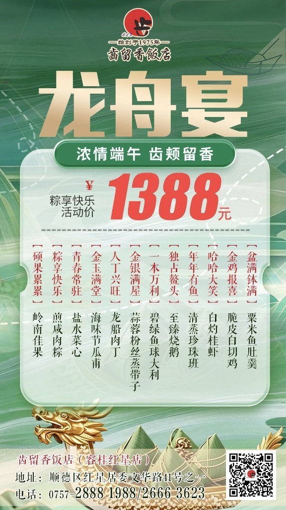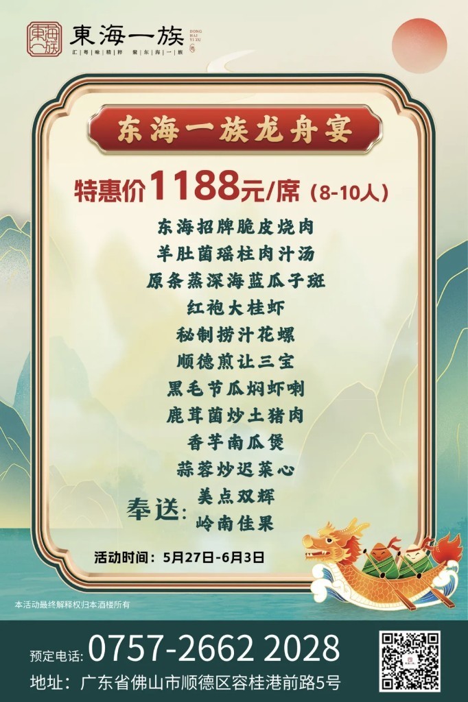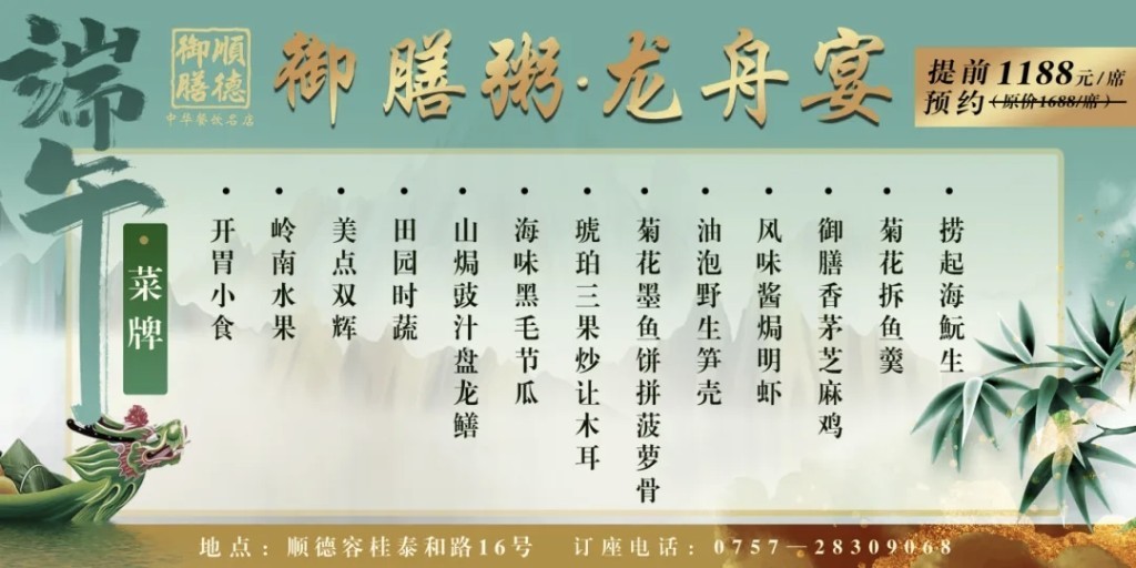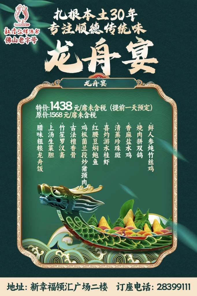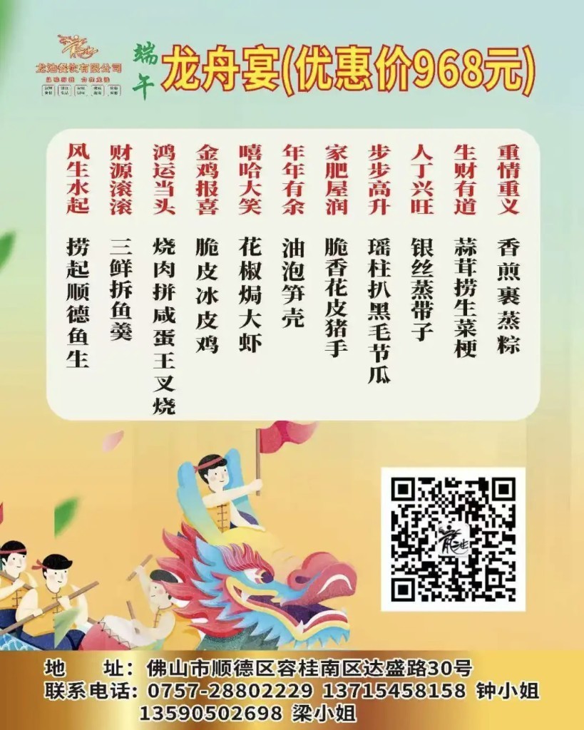 那么,端午期间,顺德容桂有哪些餐饮店将提供特色龙舟饭、龙舟宴?我们梳理了这份寻味攻略>>>