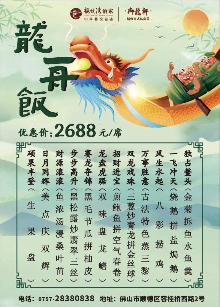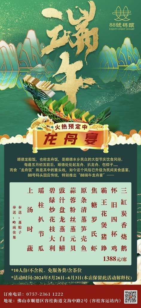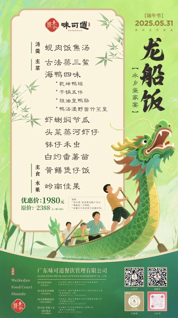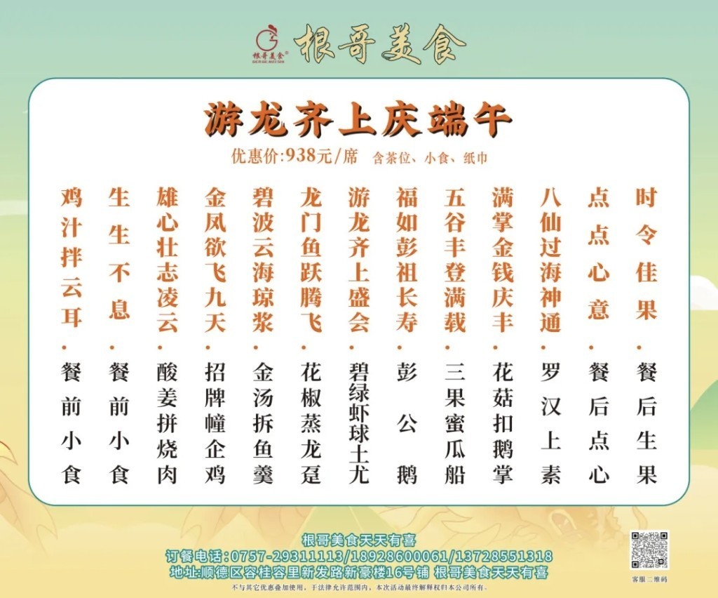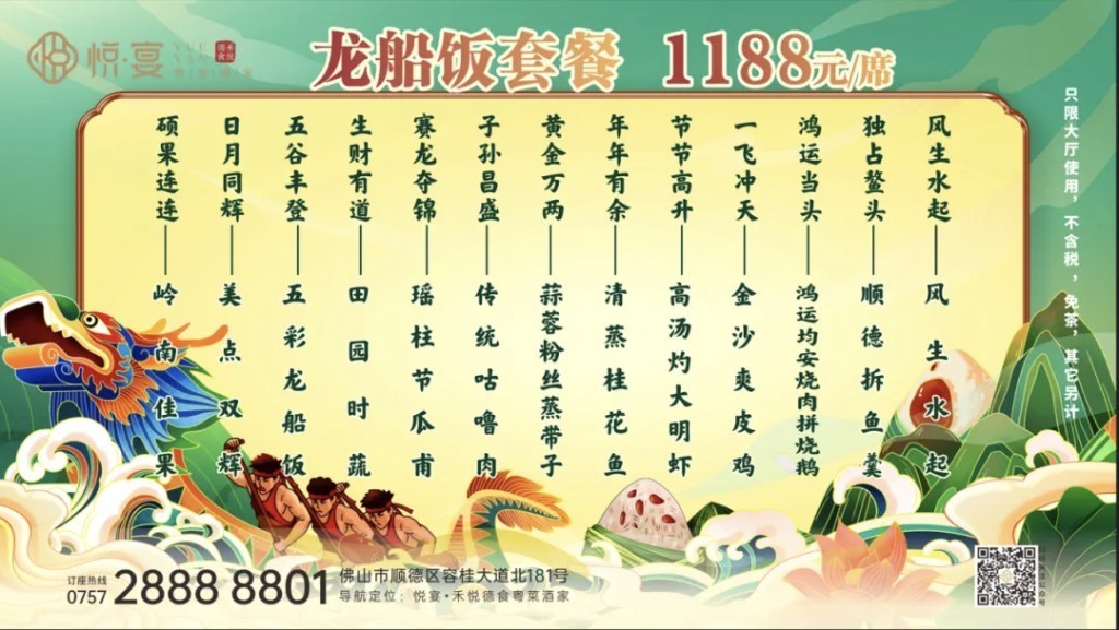那么,端午期间,顺德容桂有哪些餐饮店将提供特色龙舟饭、龙舟宴?我们梳理了这份寻味攻略>>>