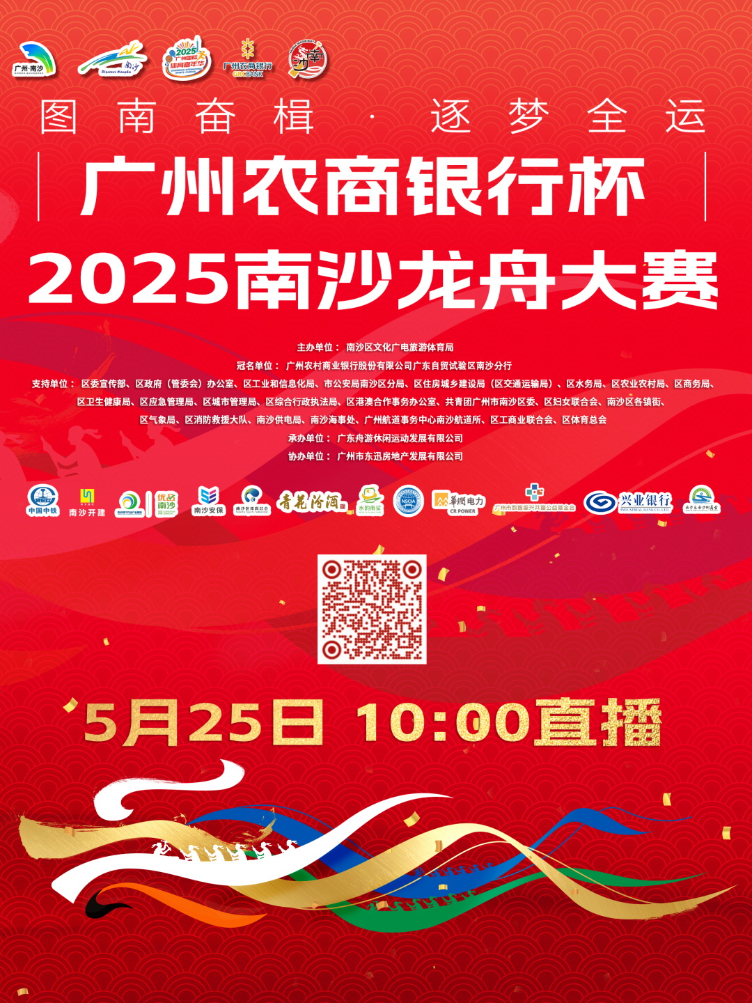 直播简介:广州农商银行杯2025南沙龙舟大赛在南沙蕉门河盛大举行。作为2025年广州体育嘉年华系列赛事之一,本届大赛以“图南奋楫・逐梦全运”为主题,汇聚了大湾区50余支精英队伍,1000多名运动员同场竞技。