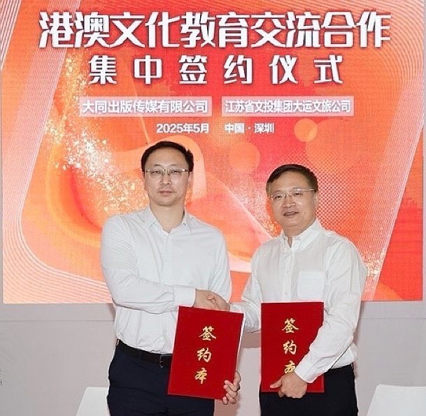 随后,大同出版传媒与江苏文投集团大运文旅签订合作协议。签约代表,江苏文投集团副总经理、党委委员吴麟童表示,未来将整合双方优势文旅资源,在共同打造服务内地、港澳青少年的文旅平台方面持续发力,助力港澳青少年开阔视野、提高文化素养和实践能力。