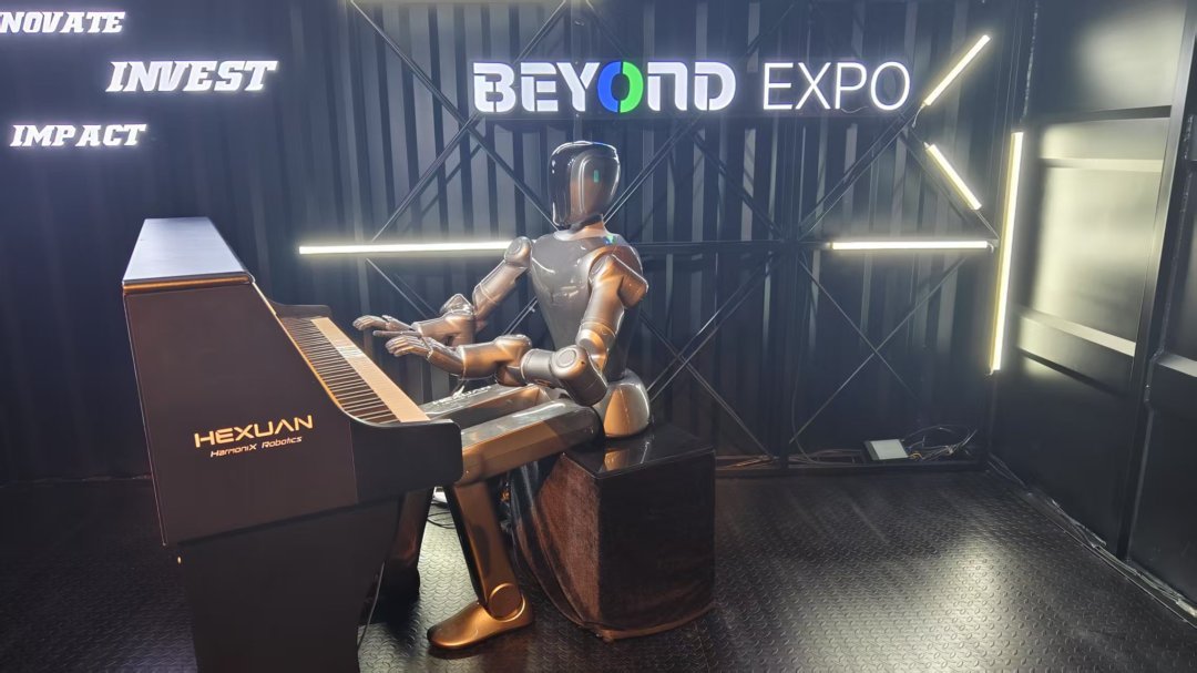 5月22日-24日,澳门国际科技创新博览会(BEYOND Expo 2025)于澳门威尼斯人酒店金光会展隆重举行。一走进展馆,一个小型的“机器人演奏会”就映入眼帘。只见一位机器人端坐钢琴前,流畅的音符在双手之间流淌;另一位机器人则手持琴竹,准确掐点敲击演奏古琴扬琴;两“人”正在合奏周杰伦的名曲《青花瓷》。