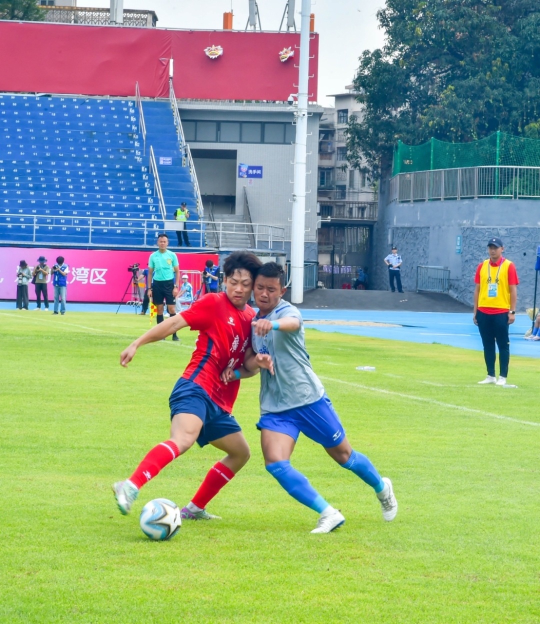 5月23—5月29日,激战十五运的热情在三水云秀山体育场弥漫,足球项目七人制男子甲组、男子乙组、老将组在这里展开角逐。足球为媒,有着百年足球文化底蕴的三水走向全运会的聚光灯下,走向全国。