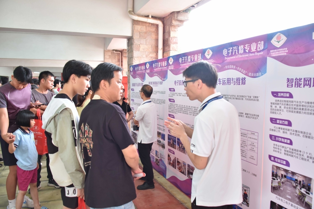 同时,广州的中职学校正在全力打通学子的成长通道,涌现出中高职三二分段班、冲本实验班、中本贯通班等特色班型。去年首次试点的综合高中班在“职普融通”之外,也意在托举学生参加夏季高考。记者在开放日看到,考生与家长也非常关心升学成绩。