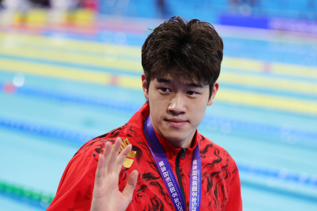 经过8天的激烈角逐,5月24日晚,2025年全国游泳冠军赛在广东深圳落下帷幕,最后一个比赛日共产生8枚金牌。男子4x100米混合泳接力决赛,徐嘉余和潘展乐领衔的浙江队毫无悬念夺冠,后者成为本届冠军赛的“九冠王”,夺得了男子50/100/200/400米自由泳4个单项的金牌和5个接力项目的冠军。