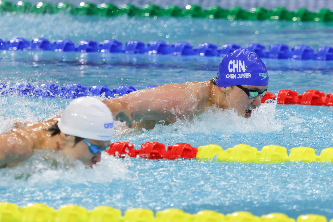广东体彩游泳队则以2金3银3铜收官,两枚金牌来自陈俊儿的男子50/100米蝶泳项目。陈俊儿表示本次比赛和十五运会游泳比赛都在家门口举行,泳迷的大力支持给了自己强大的动力,他期待突破自我,像潘展乐这样的同龄人都是他学习的榜样,他会继续努力,而心态的改变也是促进其成绩提升的因素,他从比赛第一天开始就非常期待100米蝶泳的项目,最终能够提高成绩(距离全国纪录只有0.07秒)非常满意,目前他距离世界顶尖水平还有差距,会朝着更高目标前进。