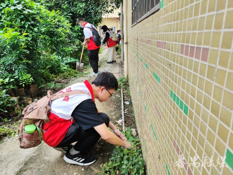 大学生志愿者为独居村民清理房前屋后杂物