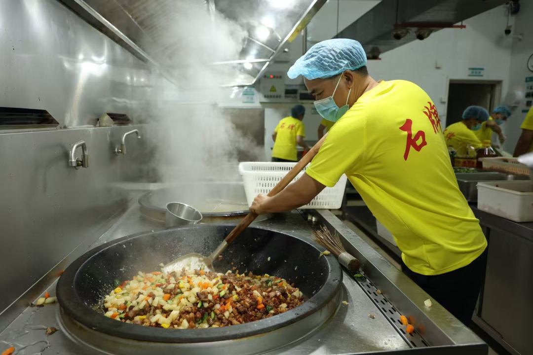 体验完采青活动后,当然少不了一顿充满美好寓意的龙船饭。下午4时半,在安居房二三期小区,厨师大显身手,为村民群众现场烹饪龙船丁(饭)。
