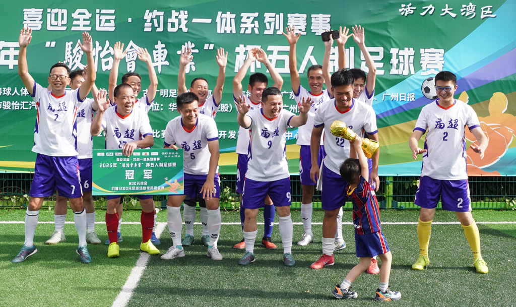 5月24日,喜迎全运·约战一体系列赛事2025年“骏怡会车业”杯五人制足球赛经过为期两周16场比赛的激烈角逐,在广州开发区第一体育中心圆满收官,穗东街庙超老咸凭借在第40分钟的绝平进球以及点球大战中的稳定发挥,以4比4(5比4)击败爱尚酒店公寓获得赛事桂冠。难怪参赛者和观众大呼“开心”“过瘾”,这样的精彩表现堪称“国际剧本”,让人欲罢不能。