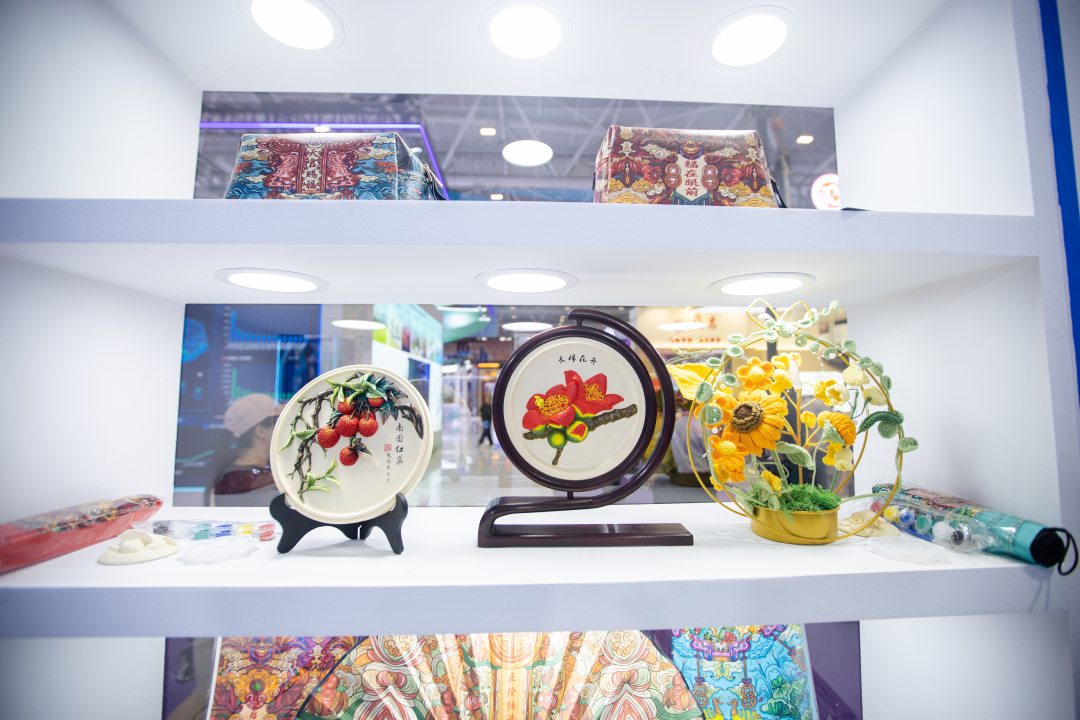 “传统手工钩针编织都是大家付出心力做出来的,而我们要做就应该把这份手艺做出精品来。”在广州馆,广州礼物展区展出了一系列不同品牌的礼物产品,吸引着一批又一批人驻足欣赏。其中,不同的永生花恣意舒展,而传统手艺打造的中国娃娃则展现出手工钩针编织的精美——来自广州市指尖力量文化传播有限公司的一系列手工钩针编织永生花和中国娃娃深受欢迎。