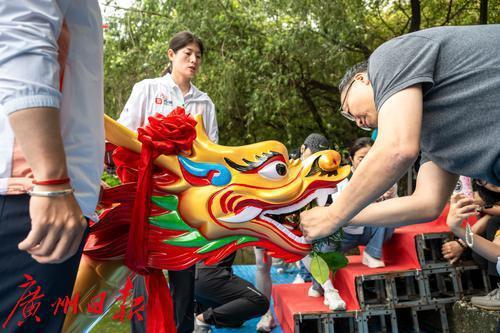 “一点眼睛,风调雨顺,国泰民安;二点天庭,吉星高照,鸿运当头!”宁荫湖畔,华农党委副书记丁红星与九江镇党委副书记李森文共同为龙舟点睛。随着朱砂落笔,龙舟敬酒、撒龙舟水、鸡公碗喝龙舟酒、锣鼓敲击依次进行,一场简约庄重的龙舟仪式举行完毕,龙舟体验营正式开始。