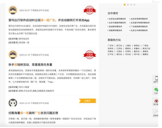记者在黑猫投诉平台搜索“摇一摇”跳转相关词汇,相关投诉达上百条。