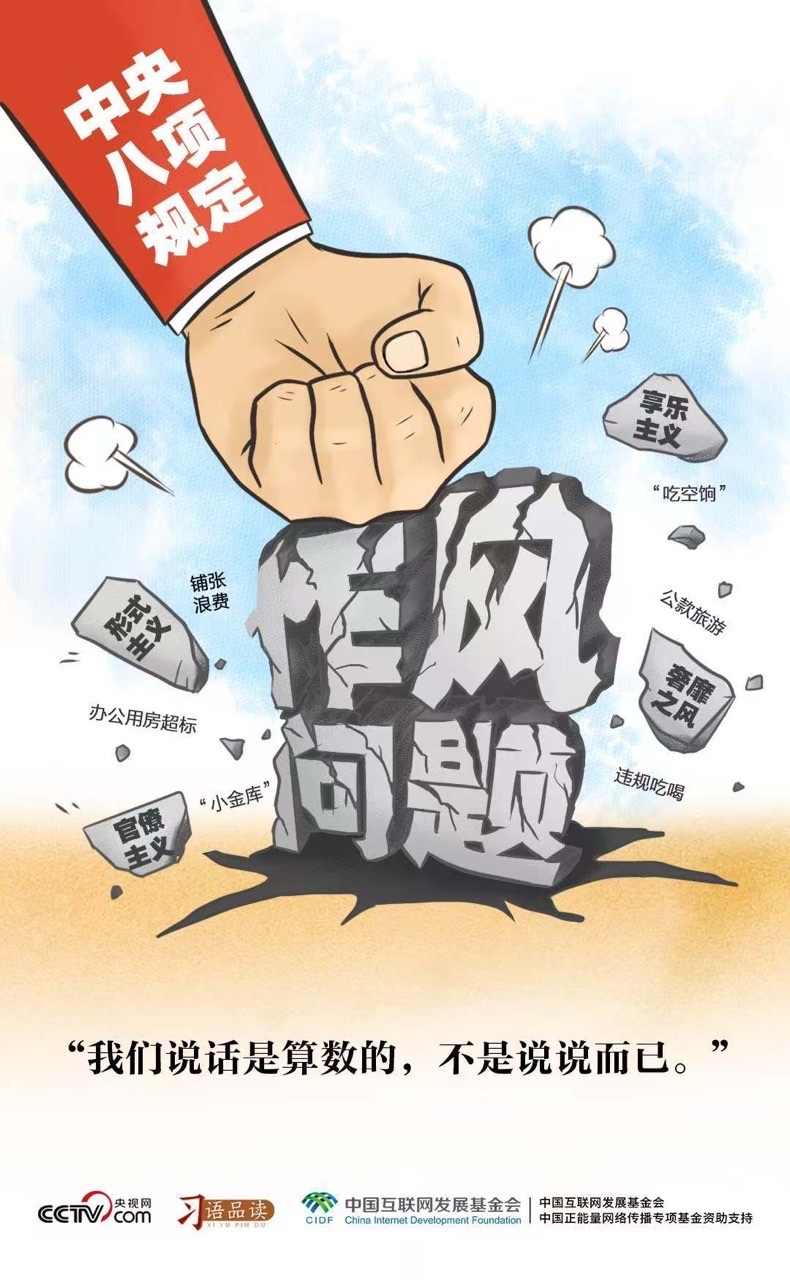 2012年12月,习近平总书记在主持中央政治局会议,审议通过《十八届中央政治局关于改进工作作风、密切联系群众的八项规定》时说了这样一番话:“我们说了不是白说,说了必须做到,把文件上写的内容一一落到实处。”