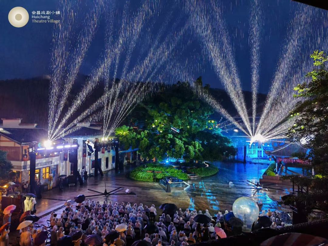 5月23日,在雨帘中,会昌戏剧小镇戏剧发起人赖声川、丁乃竺,美国著名戏剧导演Robert Wilson,著名演员谢娜、海清、屈中恒,服装设计师黄薇,摄影艺术家杜可风,中国戏剧家协会理事杨乾武、导演杨婷、罗马尼亚戏剧学者Octavian Saiu……来到现场,一同见证会昌戏剧季003开幕时刻。