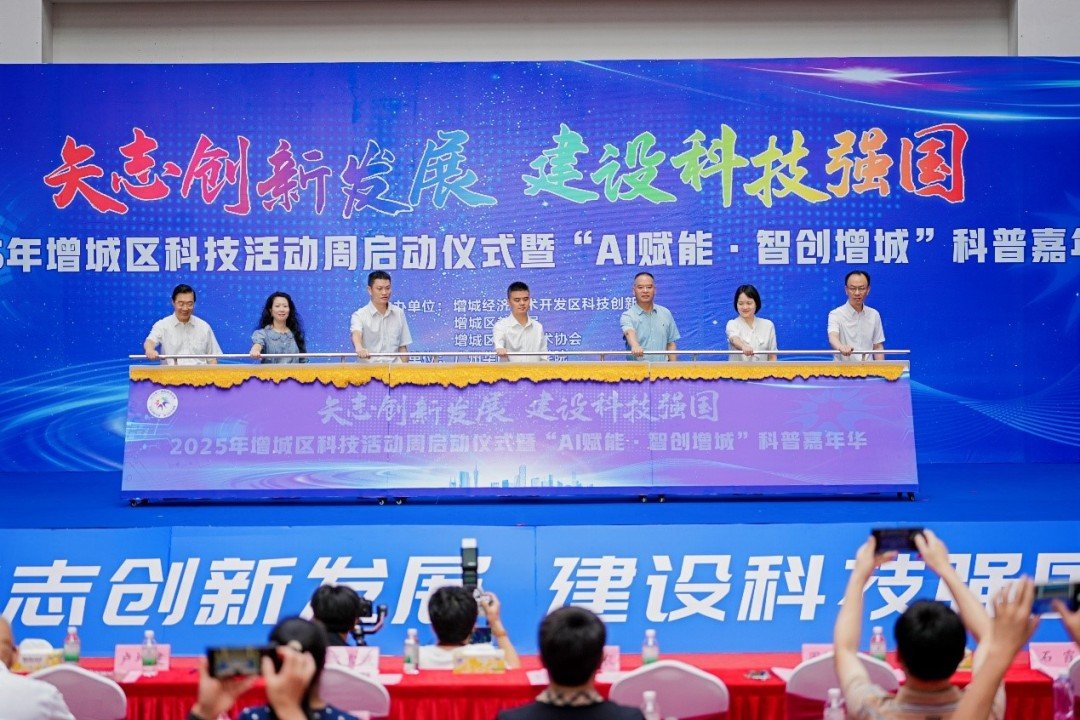 5月24日,2025年增城区科技活动周启动仪式暨“AI赋能·智创增城”科普嘉年华活动在广州华商职业学院举行。本次活动采用线上线下相结合的方式举行,科技企业、科研人才、高校师生、市民群众等超3000人共同见证。