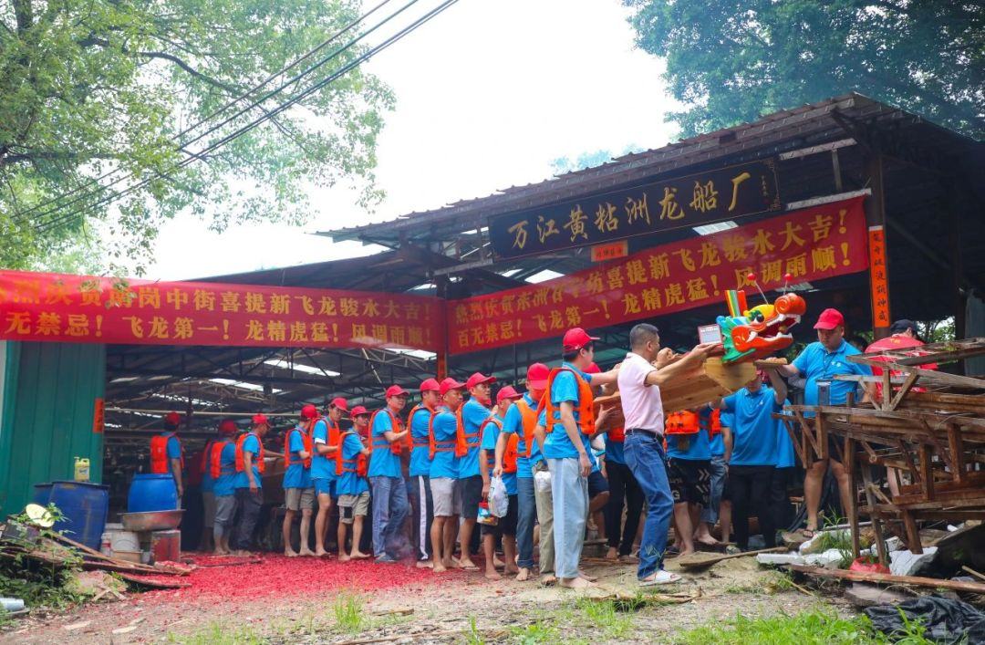 不仅广州市,东莞本地多镇也纷纷向万江“下单”。5月16日,东坑镇井美村、黄麻岭村的新龙舟在万江龙舟技艺传承基地完成骏水仪式,而寮步镇塘唇村的老龙舟也完成“重光”。