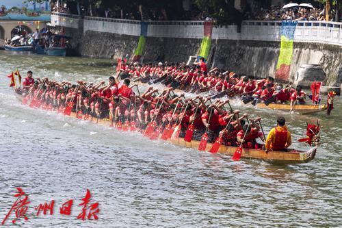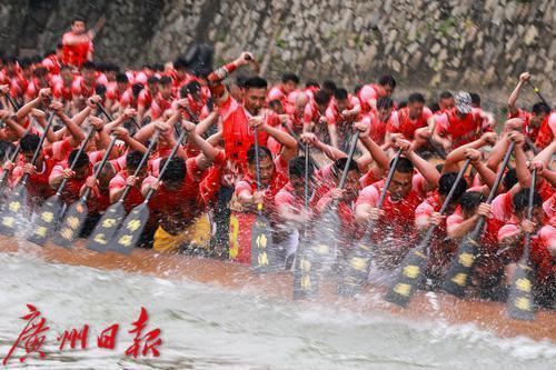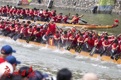 5月26日,端午节将至,广州天河车陂村龙舟赛热闹举行。这里堪称广州最盛大的民间龙舟赛之一,也被称为“小广州赛”。