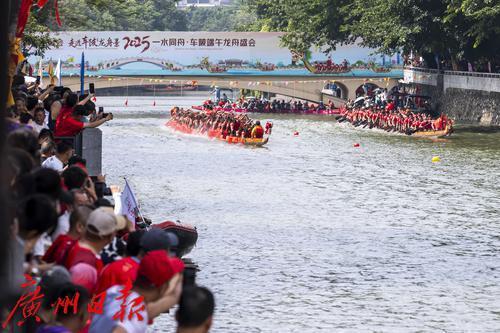 “2025一水同舟·车陂端午龙舟盛会”在广州车陂涌内举行,来自车陂村的12支龙舟队挥桨劈浪展开角逐。
