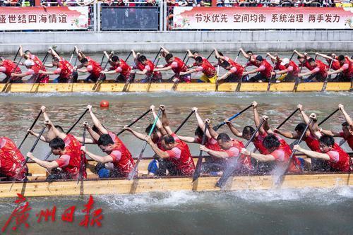 天河车陂龙舟竞渡,吸引大量市民在岸上观看。
