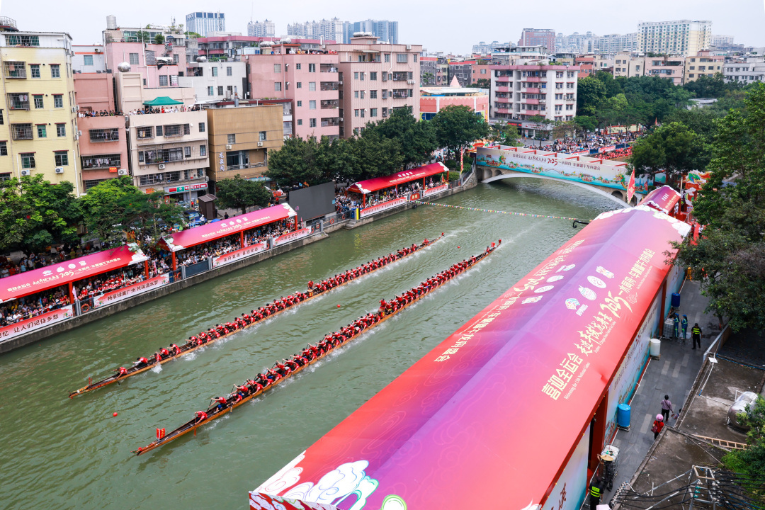 5月26日,备受瞩目的广州天河车陂村龙舟赛火热开赛。作为广州最盛大的民间龙舟赛之一,也被称为“小广州赛”,当天有12支龙船队展开激烈角逐,吸引了许多观众到场支持,连河涌两岸的房顶都挤满人,将现场气氛点燃。