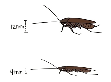 北方地区更为常见的体型小(1~2厘米)、浅棕色的小蟑螂,多为德国小蠊。