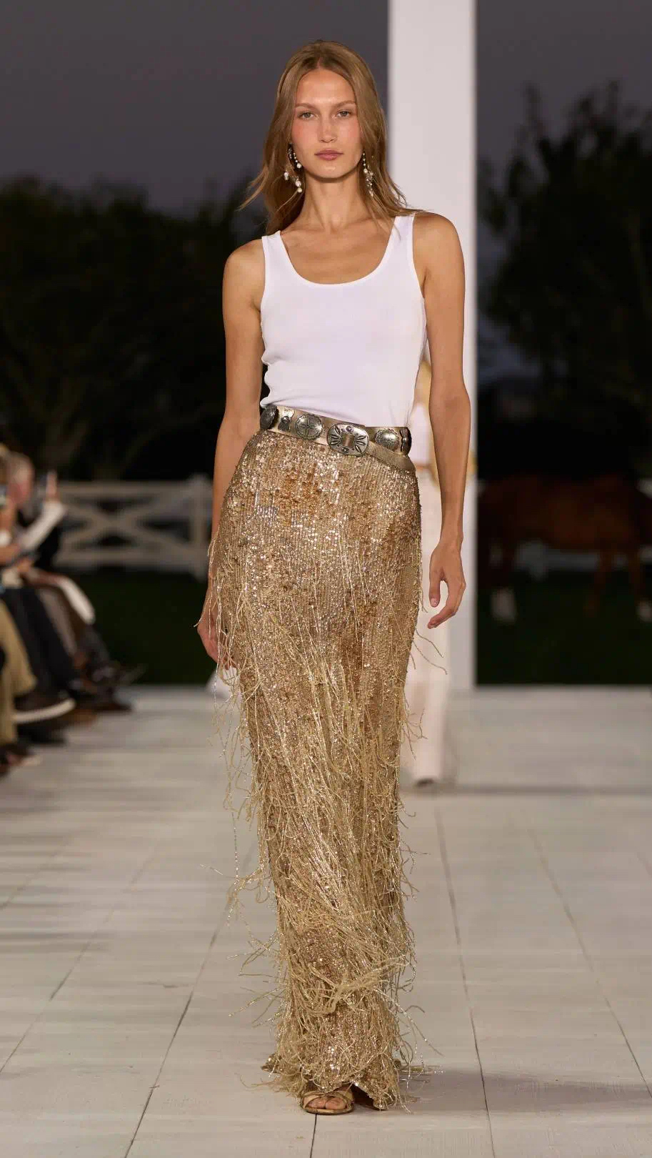 记者留意到,在2025年春夏T台秀场上,品牌设计师们都在设计中巧妙地融入流苏,包括精致优雅的短款流苏,潇洒随性的长款流苏。