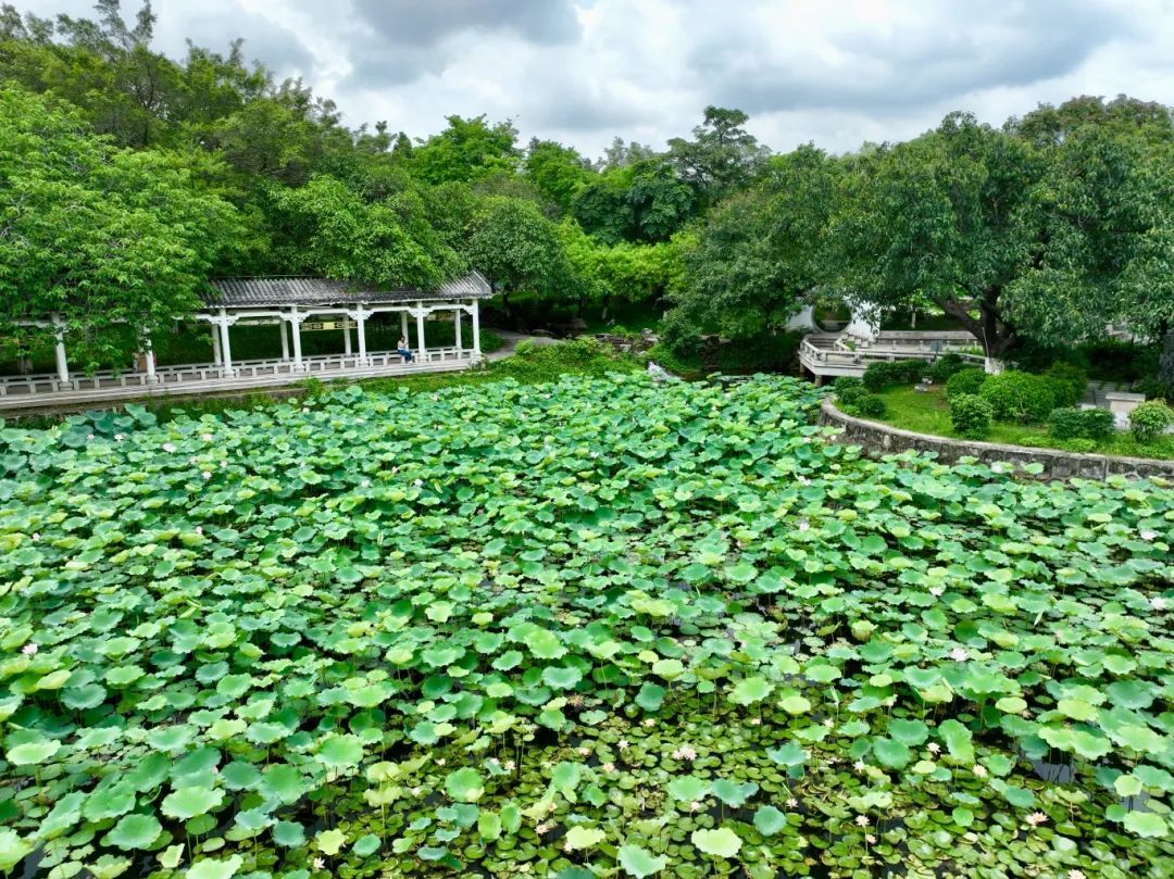 清雅优美的荷花、极具传统岭南风格的凉亭、曲折蜿蜒的回廊,展现出别具一格的水乡魅力。穿上一身汉服来打卡,秒出古风感拉满的大片!