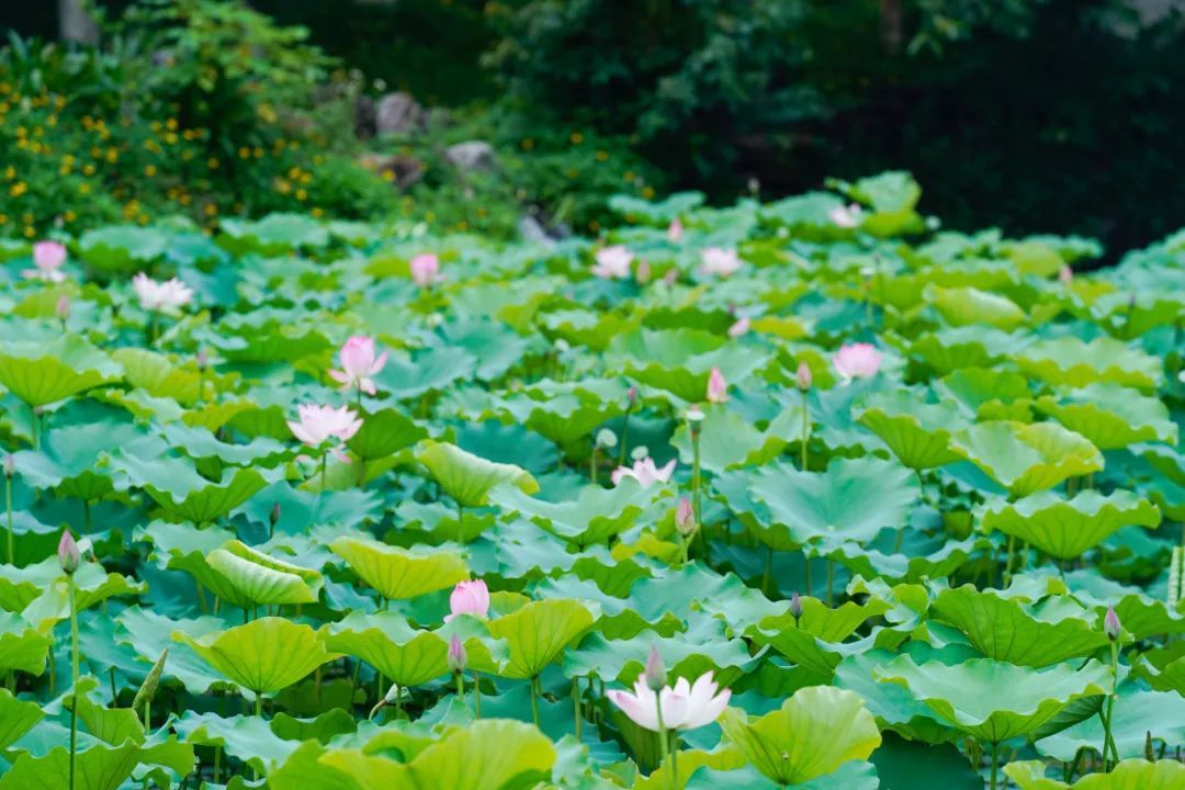 在清晨或是傍晚,微风轻拂,漫步荷花池畔,好不惬意。