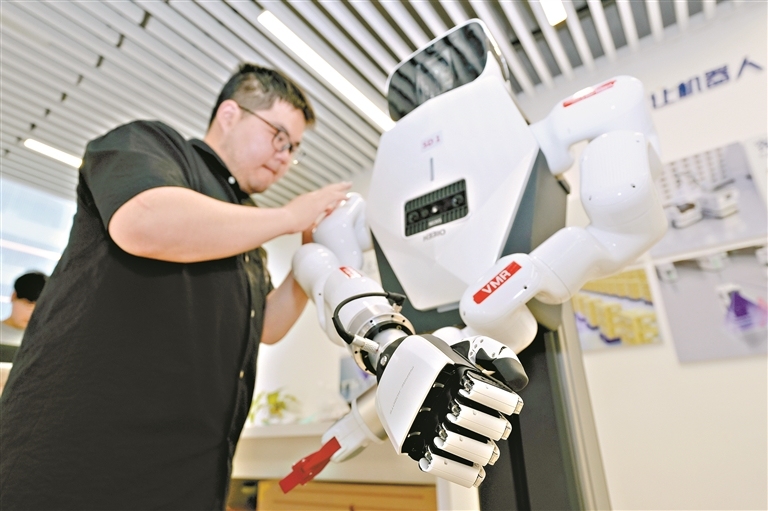 “在蓝芯科技实验室,研发团队收集记录每个生产场景的数据,用千万次数据培养出‘肌肉记忆’……当第一批机器人进入生产线后,熟练得像在车间干了好几年的老师傅。”
