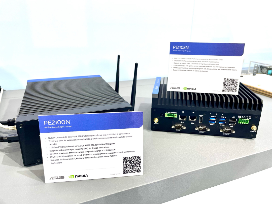 专为车载应用与移动机器人设计的ASUS PE1103N 边缘 AI 计算机,具备稳定、高效的AI处理能力,并支持顺畅的连接与坚固的车用摄影机整合。该设备搭载 NVIDIA Jetson Orin™ NX/Nano平台,在7至40瓦的功耗范围内即可实现最高157 TOPS的算力表现,为移动部署提供节能高效的 AI 处理能力。其支持最多8组具Fakra接头的GMSL 2.0车载摄影机,可实现自主导航与智能监控所需的实时AI视觉功能。透过 NVIDIA Jetson Platform Services 与 ASUS 硬件设计的灵活整合,此方案为行动AI应用提供无缝连接体验,并支持9-36V的宽电压输入范围,可实现对车载系统、自主移动机器人(AMR)与机械手臂应用场景中的稳定运作。此外,ASUS IoT云端管理平台(AICC)可透过远程更新与实时设备状态监控,有效提升整体营运效率。