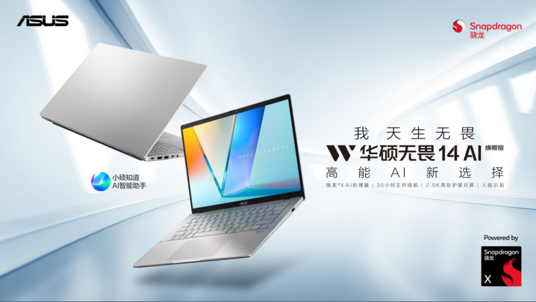 华硕无畏14 AI旗舰版是高能AI新选择。搭载高通骁龙X处理器,配备前所未有的超强NPU,算力高达45TOPS,无论是工作、学习或娱乐,都能享受到更加高效、智能且安全的使用体验。机身轻约1.35kg、薄至1.59cm,兼具时尚与实用性;可提供30.5小时超长续航满足一整天正常使用。屏幕方面配备一块2.5K亮彩护眼好屏,搭配杜比全景声,带来沉浸式影音与视频通话体验。在隐私安全方面,标配红外摄像头,即使在暗光环境下也可快速识别面容,还有多项贴心设计,严防偷窥、窃听,避免隐私泄露等。华硕无畏14 AI旗舰版专为高效生活打造,把工作交给AI,把时间还给自己,享受每一个日常瞬间。