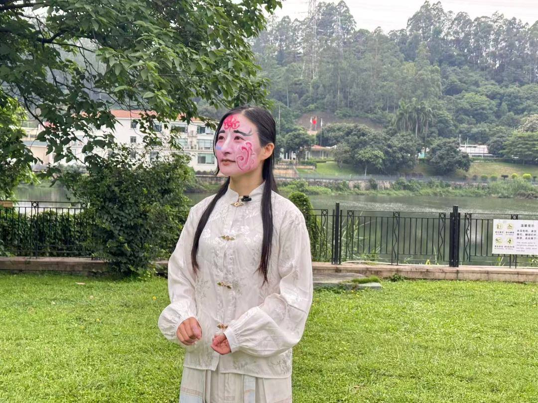 林女士在现场体验了英歌舞脸部妆造。她表示,作为一位在广州工作的潮汕人,看到英歌舞现在被越来越多人喜欢,感到很开心。这次英歌舞表演进入社区,现场队员的动作协调,这种美让大家沉浸到《水浒传》的角色氛围中来,感觉很好,会推动更多人了解名著《水浒传》中的人物故事。