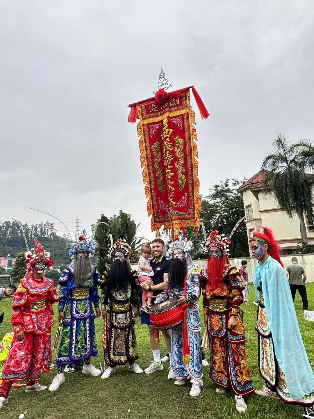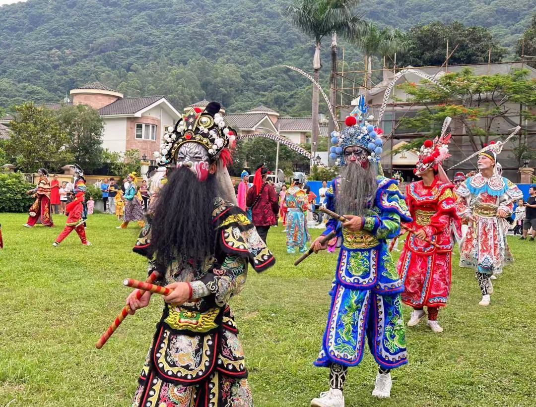 5月25日下午,广州白云区金湖花园的街坊,在家门口体验了一场潮汕英歌舞表演。