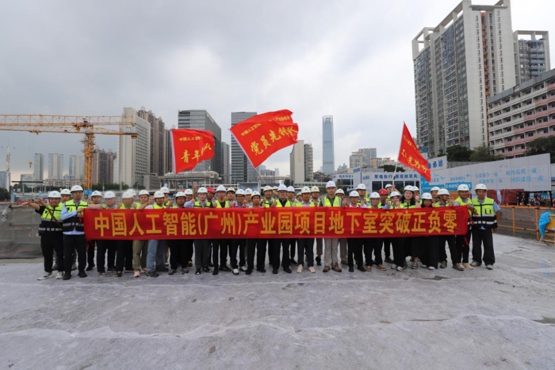 近日,中国人工智能(广州)产业园项目建设迎来重大进展,地下室首块“正负零”梁板提前20天顺利完成混凝土浇筑,标志着地下结构施工正式迈入地上主体建设阶段,为项目整体建设按下“加速键”。