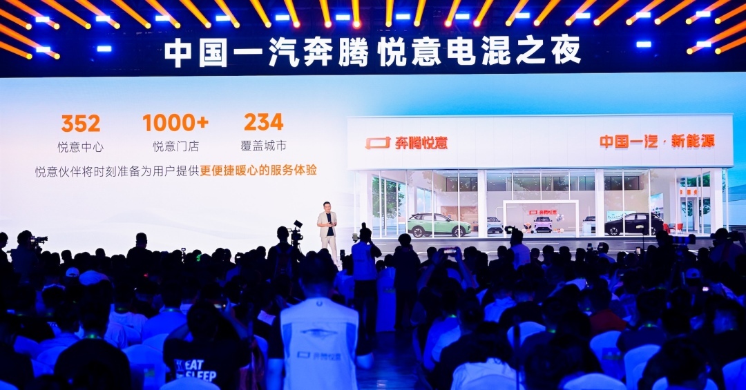 在新车布局上,一汽奔腾悦意序列正以“每年3款新车”的速度构建产品矩阵:继7万级纯电SUV悦意03之后,悦意07以电混品类破局,上海车展首秀的悦意08则瞄准更高阶市场。未来两年内,品牌将推出6款新车,覆盖A0-B级市场,涵盖纯电、电混、增程全能源形式,形成E/P/R三大产品矩阵。