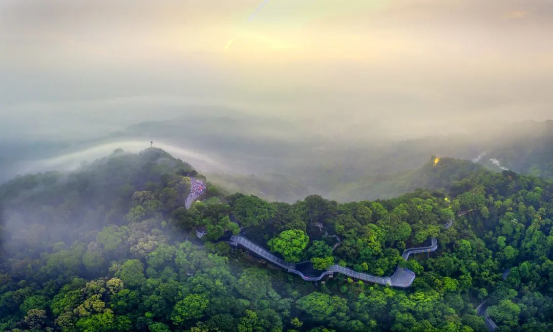 南粤名山之一,自古就有“羊城第一秀”之称,山体宽阔,由30多座山峰组成,是广东最高峰九连山的支脉,其中主峰摩星岭高382米。景区内林木繁茂、峰峦重叠、溪涧纵横,从南至北共有7个游览区,登高可俯览全市,遥望珠江;搭乘电梯登顶摩星岭可体验落日云梯;黄婆洞水库更有广州版阿勒泰之称。