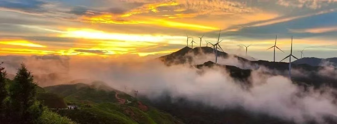主峰海拔约1200米的云冰山,是南岭山脉的云海观光胜地。破晓时分,云瀑高处倾泻而下,银白色风车群在翻腾的雾浪中若隐若现。踏上栈道,脚下便是浩渺云涛。登上山顶后,两省的风光尽收眼底,方知“一脚踏两省”的玄妙,在此可享“坐看云卷云舒”的惬意。