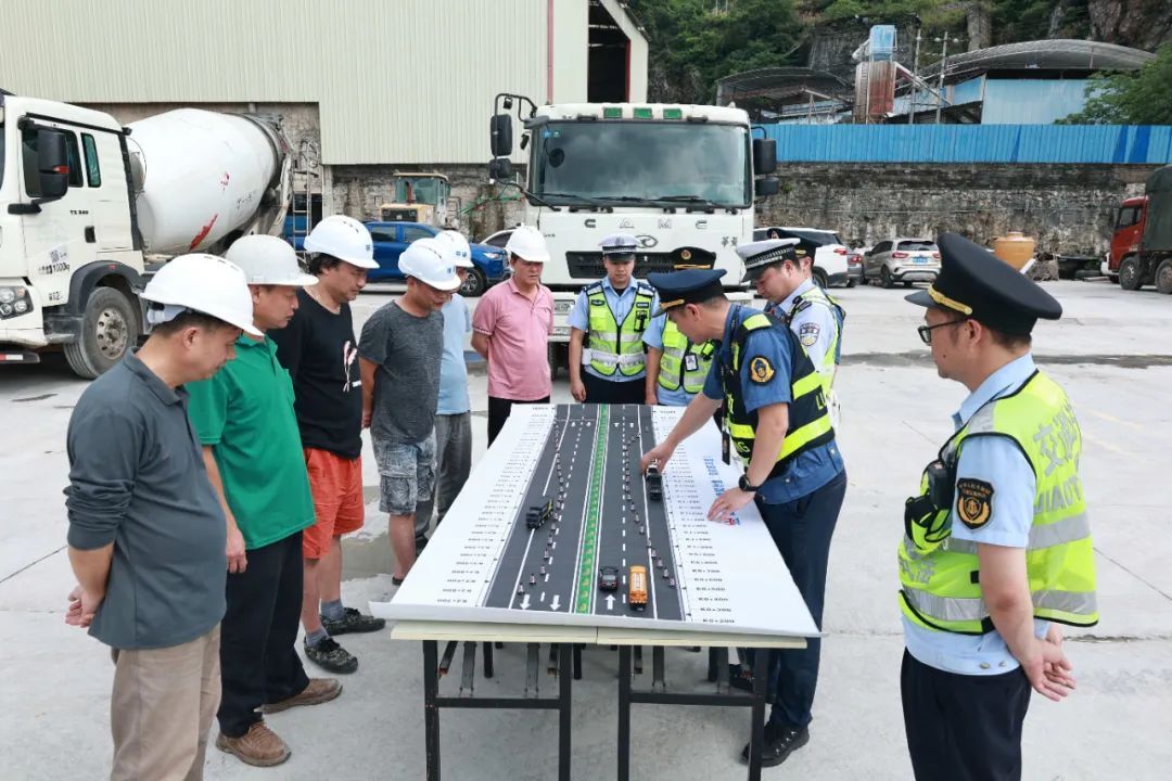 “终止区是施工车辆的‘安全出入口’,驶出时要提前提速,不然很容易引发追尾事故。”路政员通过沙盘模拟施工车辆违规并道、施工现场应急处置等典型场景,向企业员工深入浅出地讲解交通安全知识,直观呈现违规操作后果。