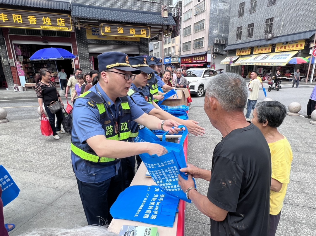 “阿叔,在高速桥下堆柴草属于违法行为,一旦起火后果严重!”宣传月期间,二广高速组织路政员深入三江镇、丰阳镇、冷坑镇等集市,派发公路法、《公路安全保护条例》等法律法规宣传单张,引导过往群众自觉爱护公路。