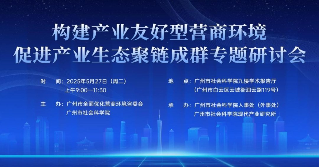 5月27日上午,由广州市全面优化营商环境咨委会、广州市社会科学院主办,广州市社会科学院人事处(外事处)、广州市社会科学院现代产业研究所承办的“构建产业友好型营商环境 促进产业生态聚链成群”专题研讨会成功举办。