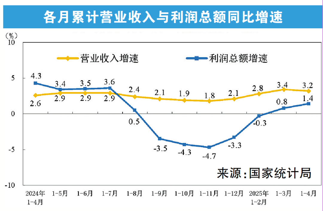 “1~4月规上工业企业利润增速加快,随着制造业特别是中游装备制造业盈利持续改善,工业企业整体利润修复态势有望延续。”民生银行首席经济学家温彬认为,企业需通过市场多元化、技术升级和供应链韧性建设巩固盈利基础。