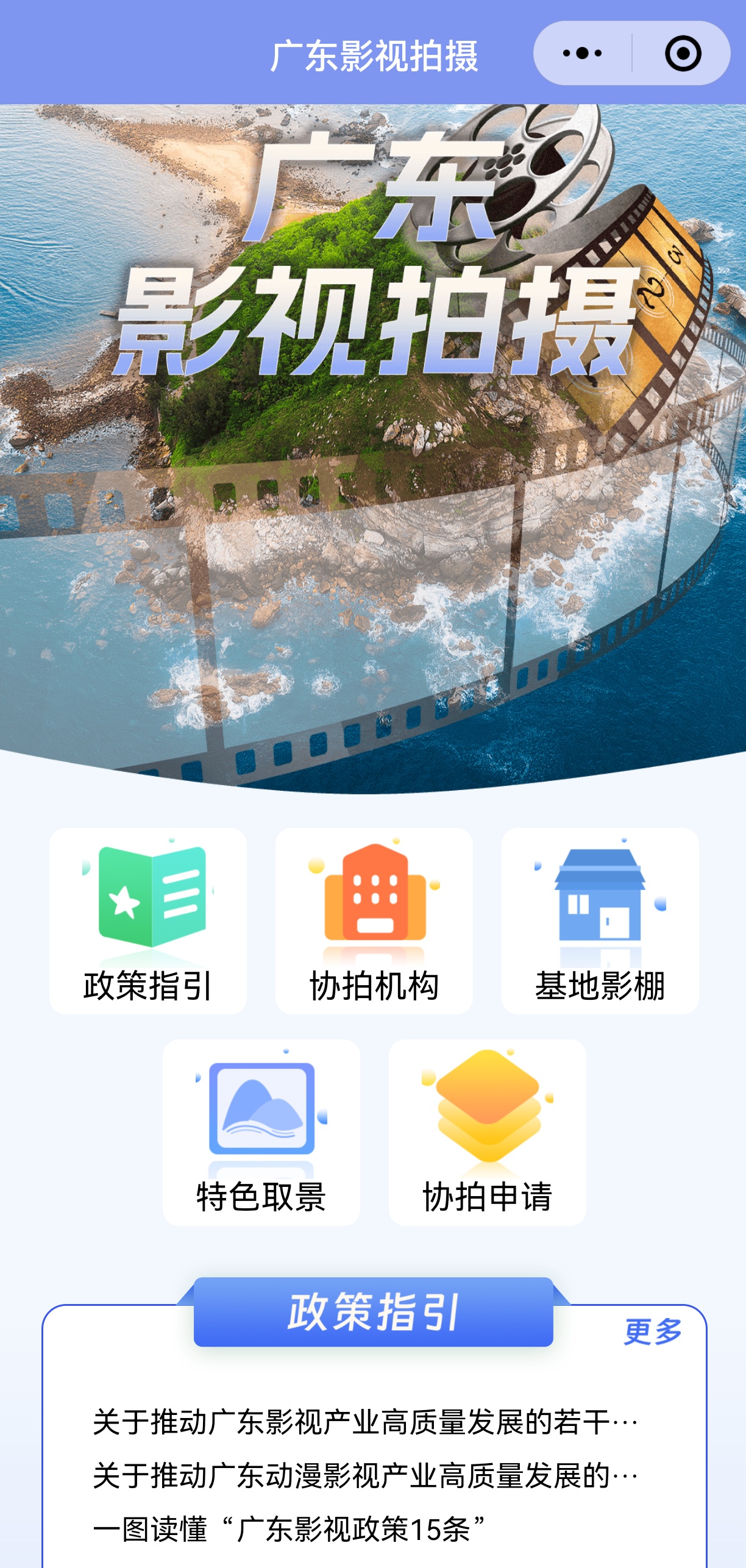 政策发布当日,“广东影视拍摄”小程序正式上线。广东公布了省、市影视集团服务机构的部门负责人,以及各地市影视拍摄服务机构的联系方式,以及首批18个拍摄基地和影棚、200多个特色取景点等。