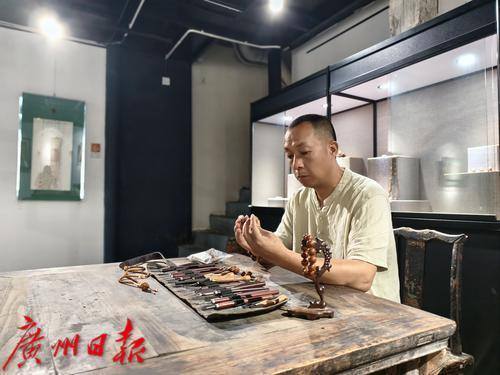入驻番禺大岭村的核雕非遗代表性传承人彭德平。