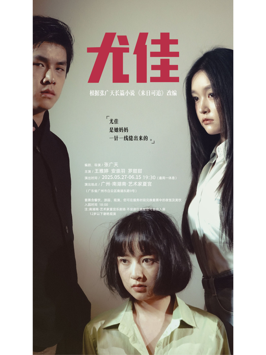 由张广天长篇小说《来日可追》改编的剧作《尤佳》,自4月首轮公演引发热烈反响后,应观众的呼声,5月27日,在南湖南·艺术家夏宫乐剧场开启第二轮演出。这部被田径界“金牌教练”李犁、香港舞台“喜剧之王”詹瑞文及知名演员禤智红盛赞为“精品之作”的戏剧,再度与观众共探命运命题。