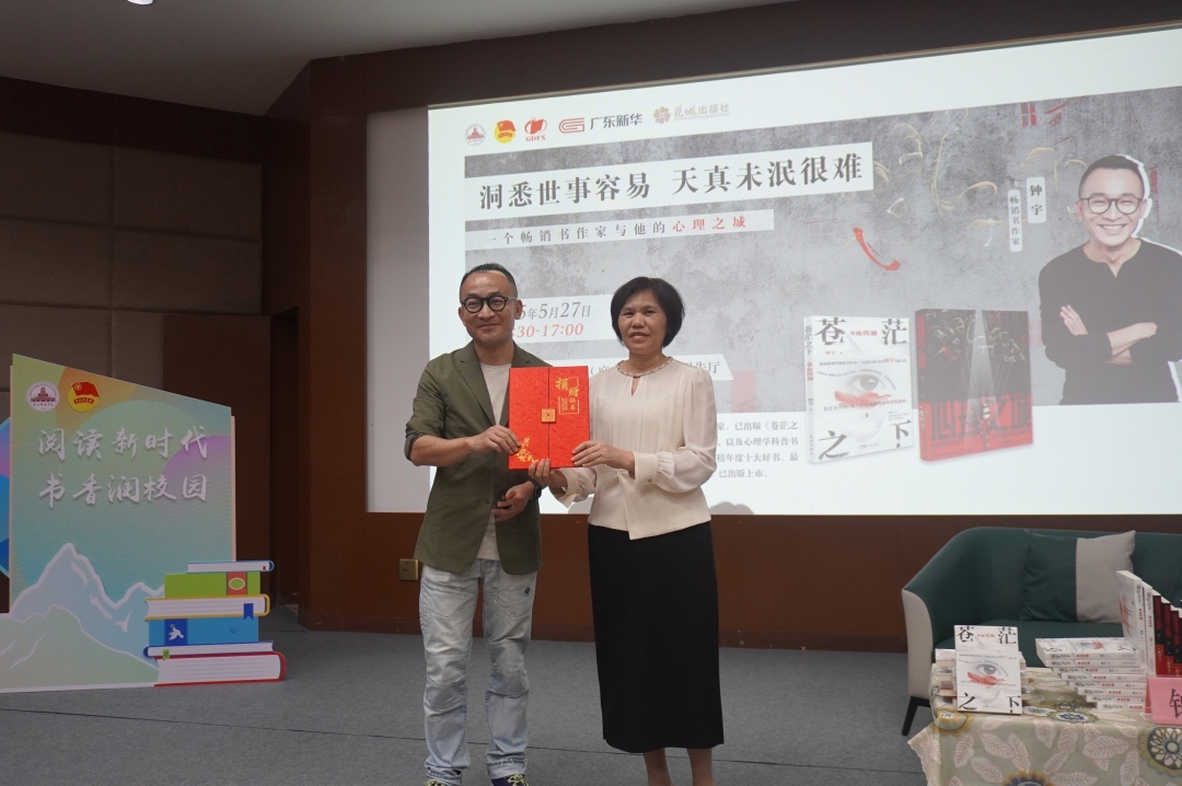 钟宇向湛江科技学院图书馆捐赠了《苍茫之下:血斑斓》《心理之城》等10册新作。捐赠仪式上,钟宇与湛江科技学院图书馆副馆长林杏共同完成赠书交接,并合影留念。此次捐赠的书籍将向全校师生开放借阅,为学子们拓展知识视野、提升人文素养提供助力。