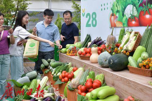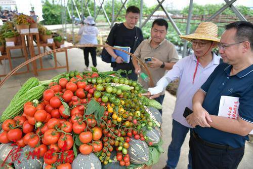 现场展示的蔬菜新优品种吸引了众多参观者关注。
